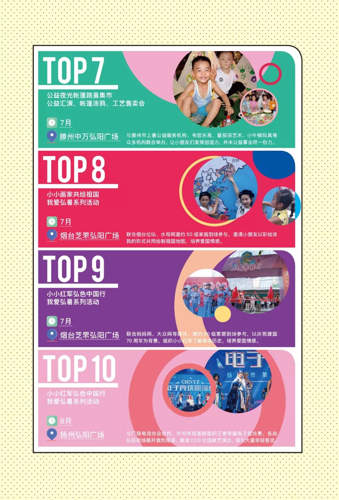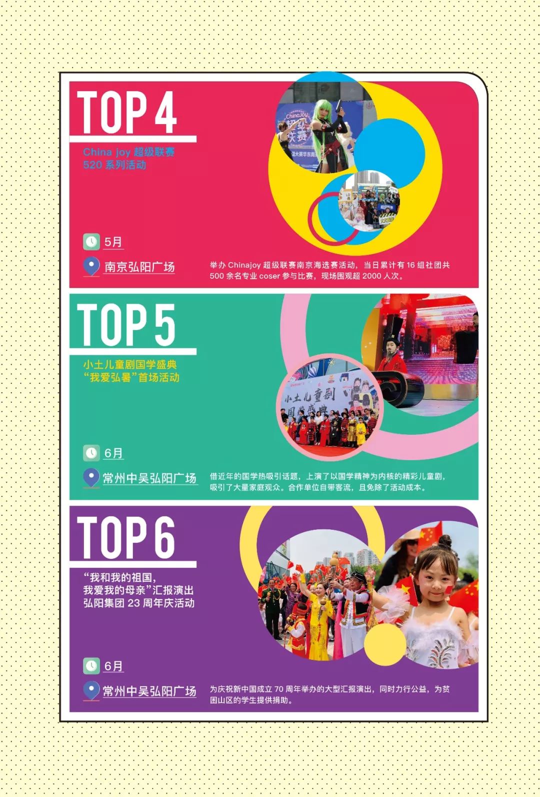 各地的弘阳广场也充分借鉴南京弘阳广场中心秀场运营的成功经验,举办了多种人气颇高的精彩活动,并在近期开展体验式系列活动,引爆假期热潮。弘阳广场致力于让消费者与商场、城市与商业产生情感共鸣与联结,打造“永不落幕的城市秀场”。
