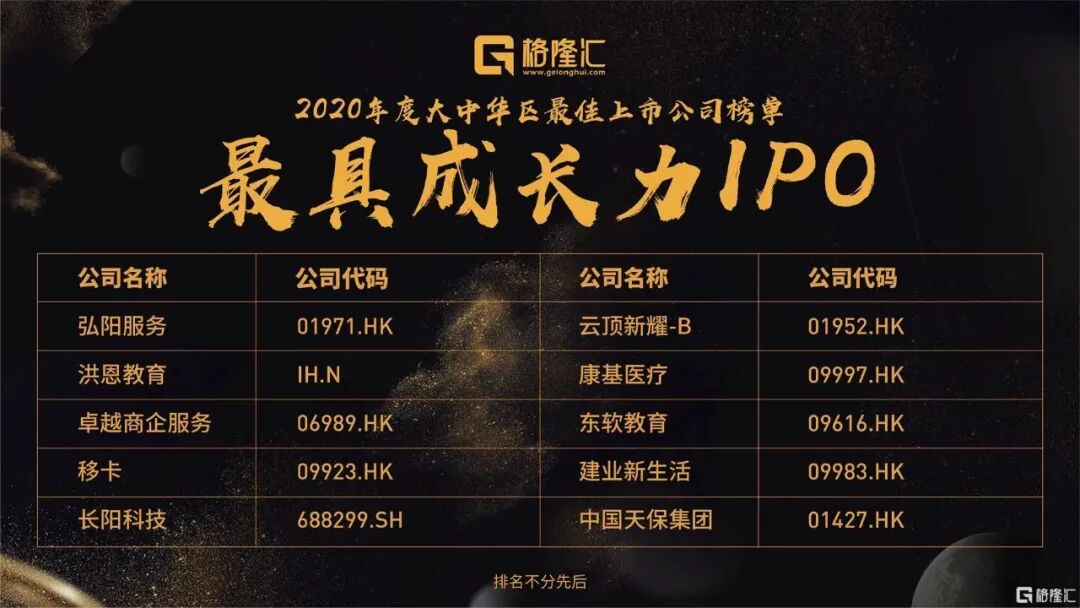 在格隆汇主办的“格隆汇·全球投资嘉年华·2020”峰会上,弘阳服务(01971.HK)荣获“2020年度最具成长力IPO奖”。